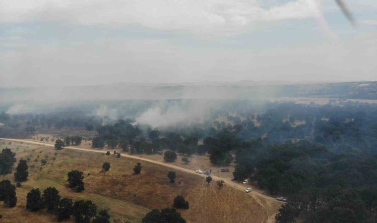 Edirne’nin Lalapaşa ilçesine bağlı Ömeroba köyünde başlayan orman yangına havdan ve karadan müdahale sürüyor.