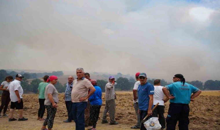 Köyde yaşayan vatandaşlar yangının tarım arazilerine ve çiftliklerine ulaşmaması için traktörleriyle söndürme çalışmalarına destek veriyor.
