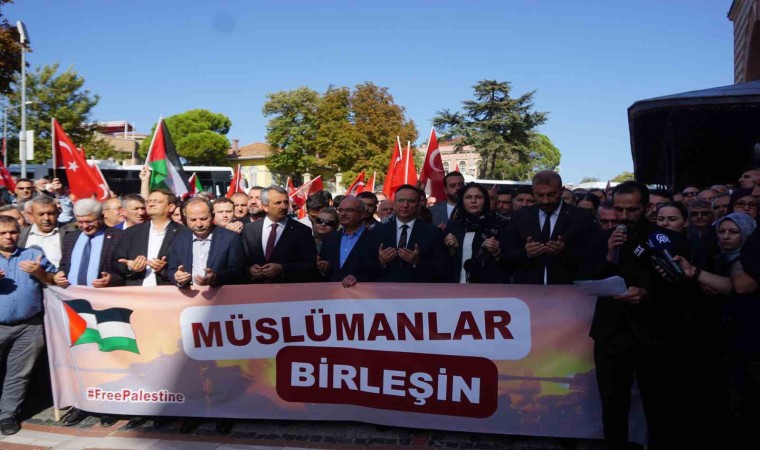 Edirne’de Eski Camii önünde bir araya gelen çeşitli sivil toplum kuruluşları ve siyasi parti temsilcileri, İsrail’in Gazze’ye yönelik saldırılarını protesto etti.
