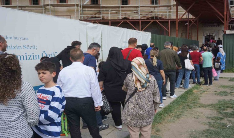 Mimar Sinan’ın Ustalık eseri Selimiye Camii’ne ibadet ve ziyarete gelen turistler, içeriye girebilmek için kuyruğa girerek sırada bekledi. Hem Camiye girişte hem de çıkışta yoğunluk yaşandı. Selimiye Cami’nde restorasyonun devam etmesi nedeniyle sadece belli bir kısmı ibadet ve ziyarete açık olmasına rağmen yoğunluk yaşandı.