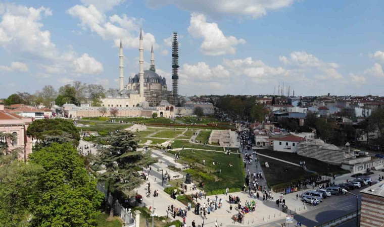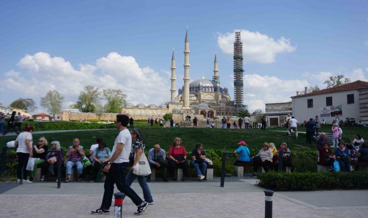 Edirne’de 9 günlük Ramazan Bayramı tatili dolayısıyla yaşanan turist yoğunluğu nedeniyle kentte adeta adım atacak yer kalmazken, Mimar Sinan’ın Ustalık eseri Selimiye Camii’ne gelen ziyaretçiler ise içeriye girebilmek için saatlerce kuyrukta bekledi.