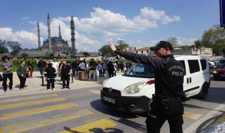 Mimar Sinan Heykeli, Edirne Yazısı ve Selimiye Camii’nin bulunduğu kavşakta tedbirler arttırıldı. Edirne İl Emniyet Müdürlüğü Trafik Tescil ve Denetleme Şubesi ekipleri trafik akışını sağlarken, çevik kuvvet ekipleri ise yoğunluğun yaşandığı noktadaki yaya geçidi önünde vatandaşların geçişine yardımcı oldu.