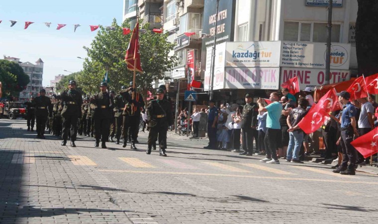 Menderes Bulvarı’nda gerçekleştirilen resmi geçit törenine ise askerler, öğrenciler, sivil toplum kuruluşları, dernekler, meslek odaları, Balıkesir Büyükşehir Belediyesi ve Edremit Belediyesi ekipleri katıldı. Jandarma ve polis ekipleri de araçlarıyla resmi geçit törenine renk kattı.