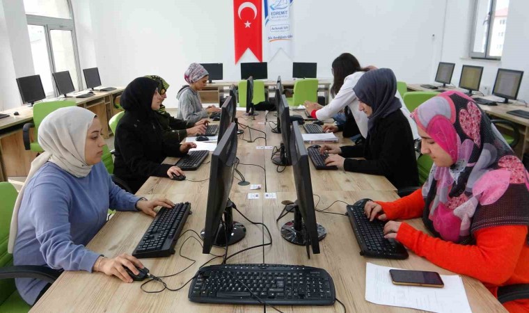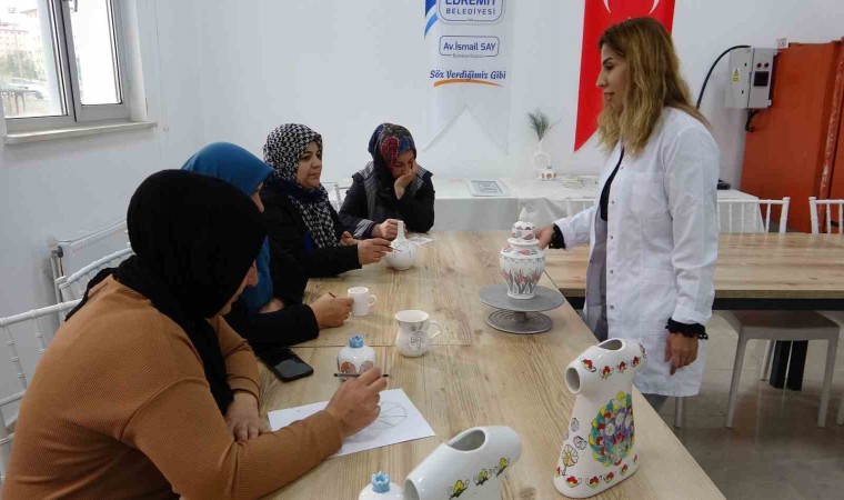 Edremit Belediyesi Kadın ve Aile Hizmetleri Müdürlüğü tarafından açılan kurslar ile kadınlar bir yandan sosyalleşirken, bir yandan da edindiği meslek ile aile ekonomisine katkı sağlıyor. Üç farklı birimde 23 eğitmenin eğitim verdiği merkezde, yaklaşık 400 kursiyer eğitim görüyor. Dikiş nakıştan okuma yazma kurslarına, deri çanta yapımından çiniciliğe, ahşap boyamadan tasarıma kadar birçok alanda kadınların meslek sahibi olduğunu belirten Edremit Belediyesi Kadın ve Aile Hizmetleri Müdürü Habban Demirbacak, kursların sabah ve öğle olmak üzere iki grup şeklinde düzenlendiğini ifade etti. Kadınların kurslara olan ilgisinin memnuniyet verici olduğunu belirten Demirbacak, “Buraya gelen kadınlar ilk bakışta hobi amaçlı ve aile bütçelerine katkı sunmak için gelseler bile aslında kafa dağıtmak için geliyorlar. Evdeki ortamdan biraz olsun uzaklaşmak için gelen kadınlarımız var. Kadınlarımız burada yaptığı ürünleri satarak aile bütçelerine maddi imkan sağlıyorlar. Bizim ayrıca sosyal ve kültürel gezilerimiz de oluyor. Burası hem sosyalleşmek hem de kültürel açıdan kadınlarımız için çok iyi” dedi.