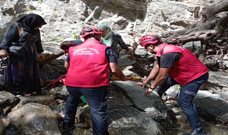 Balıkesir’in Edremit ilçesinde kanyondaki kayalıklardan düşen turist kadını itfaiye ekipleri kurtardı.