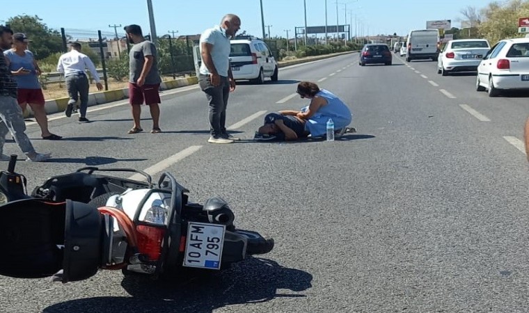 Edremitte motosiklet kazasında sürücünün yardımına çevredekiler koştu