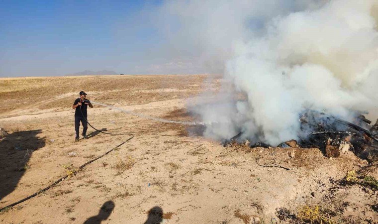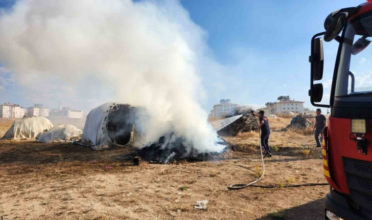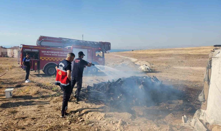 Van’ın Edremit ilçesinde çıkan yangında istiflenen odun ve tezekler yandı.