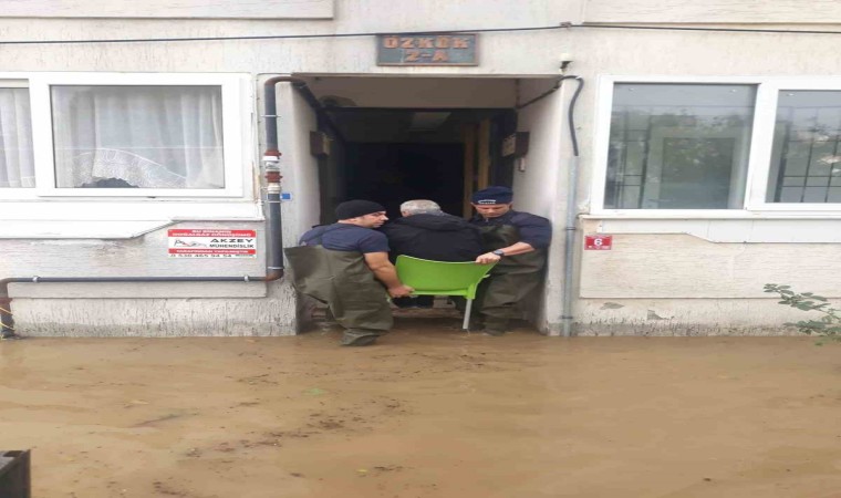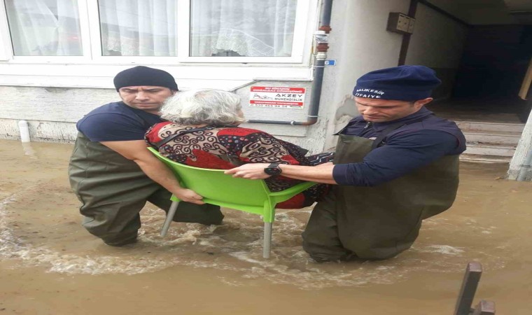 Balıkesir’in Edremit ilçesinde etkili olan yağışta sular altında kalan insanlar kimi yerde itfaiye merdiveniyle, kimi yerde itfaiye erlerinin sırtında, kimi yerde ise sandalye ile taşınarak kurtarıldı.