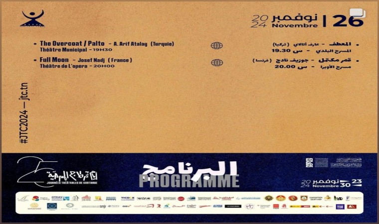 Nikolay Vasilyevic Gogol’un kaleme aldığı, Abdullah Arif Atalay’ın yönetmenliğini üstlendiği, Mustafa Bilirdönmez, Mekselina Düğdü ve Berkay Alkan’ın reji asistanlığını yaptığı oyun başta Erzurum’da olmak üzere sahne aldığı tüm şehirlerde tiyatro izleyicileri tarafından ayakta alkışlanıyor. Dünya tiyatrosunun baş yapıtlarından biri olarak görülen oyunda 9’uncu dereceden kadrolu kalem memuru Akakiy Akakiyeviç’in kendisini soğuktan koruyamayan eski paltosunun arkadaşları tarafından yırtılmasının ardından yüksek fiyat karşılığında yepyeni bir palto diktirmesi ve bu yeni paltosu şerefine verilen kutlama partisi sonrasında ise paltosunu çaldırması, ardından çalınan paltosunu bulmak adına verdiği mücadele anlatılıyor. Yılmaz Karakuzu, Özlem Çiftçi Sak, Özlem Uslu, Ergenekon Cemil Başdoğan, Onur Emre Teber, Halit Burak Günuğur ve Berkay Alkan’ın rol aldığı "Palto" isimli tiyatro oyunu 30 Kasım’a kadar sürecek olan festivalde, 32 ülkeden toplam 125 oyunun sahneleneceği 25. Kartaca Uluslararası Tiyatro Festivali’nde 26 Kasım da Tunus’ta tiyatro severlerle buluşacak.
