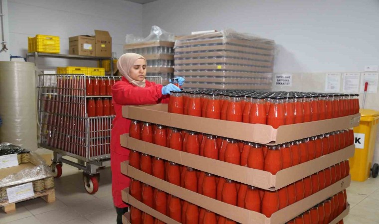 Efeler Belediyesi’nin verimli tarım arazilerinde yetiştirilen domatesler, Başkan Atay’ın hizmete açtığı Yüzde 100 Kadın Emeği Tarımsal Ürün Fabrikası’nda hijyenik koşullarda işlenerek tüketime hazır hale getiriliyor.