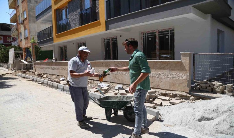 Efeler Belediyesi Destek Hizmetleri Müdürlüğü, sıcak hava şartlarının belediye çalışanları üzerindeki olumsuz etkilerini en aza indirmek amacıyla yeni bir uygulama başlattı. Sağlık İşleri Müdürlüğü’ne bağlı iş yeri hekimlerinin önerileri doğrultusunda hayata geçirilen uygulama kapsamında dış birimlerde saha çalışmalarını yürüten personele ücretsiz su ve maden suyu dağıtılıyor.