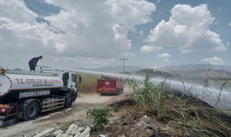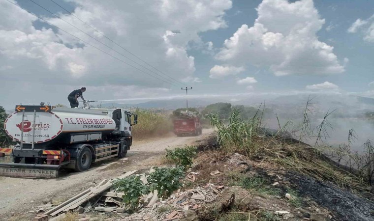 Efeler Belediyesi, Aydın’ın Köşk ilçesindeki bir evde çıkıp zeytin ağaçlarının bulunduğu araziye sıçrayan yangını söndürme çalışmalarına destek oldu.