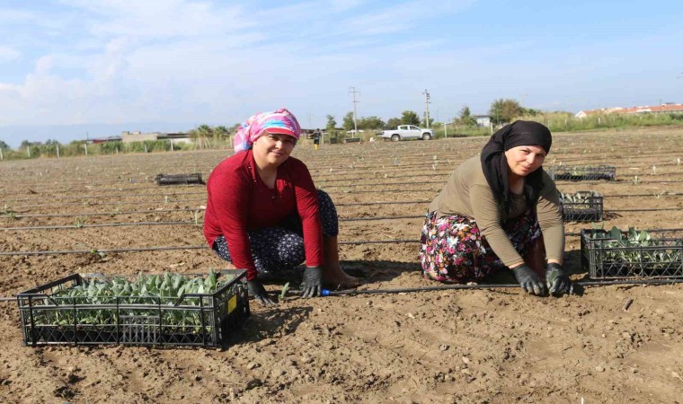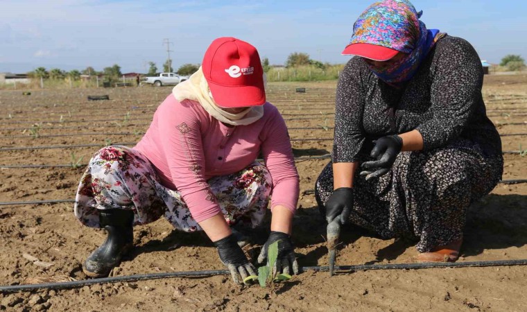 Başkan Mehmet Fatih Atay’ın oldukça önem verdiği tarımsal kalkınma projeleri, personelinin emeğiyle hayat buluyor. Kendi arazilerinde üretimi sürdüren Efeler Belediyesi; şevketibostan, kuşkonmaz, kekik, ekmeklik buğday, karakılçık buğdayı ve daha birçok tarımsal ürününün yanında Efeler’in kalitesi ve lezzetiyle bilinen enginarlarının da üretimine devam ediyor. Belediye eliyle 4 yıldır üretimi yapılan enginarların, bu yılki üçüncü hibrit enginar dikimi, Tepecik Mahallesi’ndeki belediye arazisinin 20 dönümlük bölümünde gerçekleştirildi. Özenle çalışan kadın emekçiler, ilçenin bereketli topraklarını fidelerle buluşturdu.