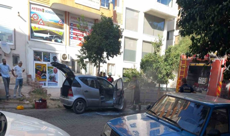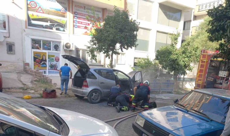 Aydın’ın Efeler ilçesinde seyir halindeki bir otomobilde çıkan yangın itfaiye ekipleri tarafından söndürülürken, araçta maddi hasar meydana geldi.