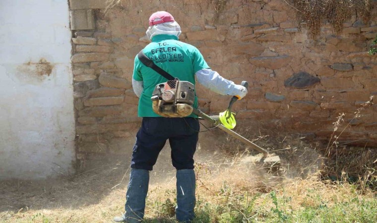 Efeler Belediyesi, kent genelindeki yabani ot biçme ve temizlik çalışmalarına hız kesmeden devam ediyor.
