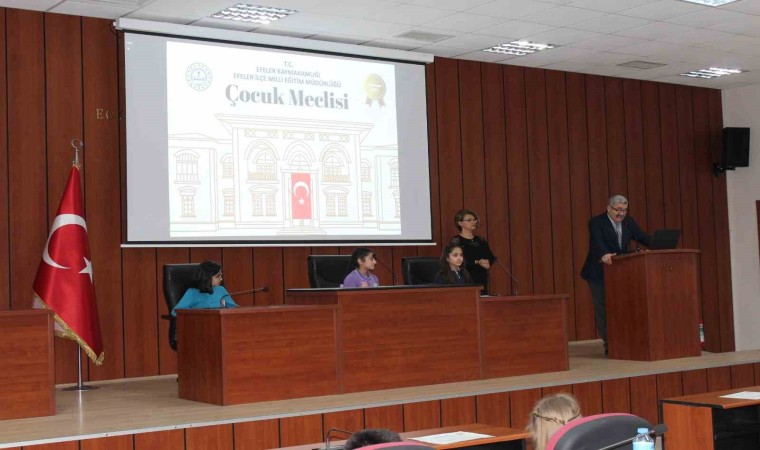 Aydın’ın Efeler ilçesinde çocukların temsil yeteneklerinin gelişmesi hedefiyle hayata geçirilen Çocuk Meclisi’nin birinci dönem toplantısı gerçekleştirildi. Mecliste, akranlarını temsil eden öğrenciler haklarını savunarak sorumluluk alma bilincini geliştirdi.