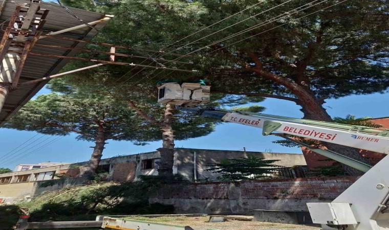 Efeler Belediyesi, Umurlu Mahallesi’nde elektrik tellerine temas ederek can ve mal güvenliğini tehdit eden çam ağaçlarıyla ilgili önlem aldı.