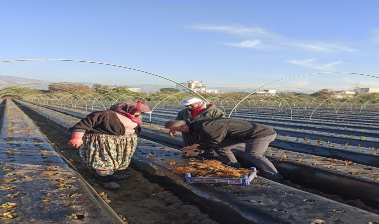 Türkiye’de en fazla çilek üretiminin yapıldığı illerin başında gelen Aydın’da çiftçiler, kış çileği üretimi için tarlaya inerken Efeler ilçesinde fideler toprakla buluştu.