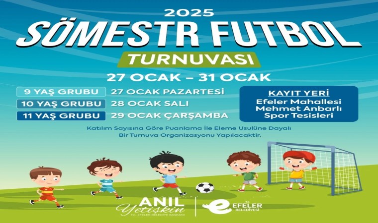 Efeler Belediyesi’nden yapılan paylaşımda "2025 Sömestr Futbol Turnuvası başlıyor. Katılım sayısına göre puanlama ile eleme usulüne dayalı heyecan dolu bir turnuva sizi bekliyor" ifadeleri yer aldı.