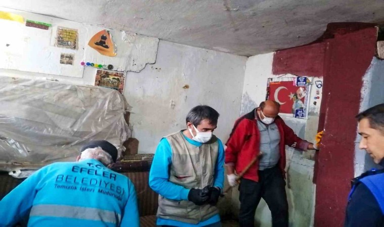 Efeler Belediyesi, ilçede daha temiz ve sağlıklı bir çevre oluşturmak için yürüttüğü temizlik ve çevre sağlığını koruma çalışmalarını aralıksız sürdürüyor. Edinilen bilgiye göre Efeler Belediyesi ekipleri, Orta Mahalle 209. Sokak’ta, bir evin çöple dolduğunu tespit etti. Bu durum karşısında hızla harekete geçen Zabıta Müdürlüğü, Temizlik İşleri Müdürlüğü ve Sağlık İşleri Müdürlüğü ekipleri kapsamlı bir çalışma başlattı. Ekipler, evden yaklaşık 2 kamyon çöp çıkartırken, çevredeki sağlık riskleri de ortadan kaldırıldı. Çöplerin toplanmasının ardından, alan dezenfekte edilerek hijyenik hale getirildi.