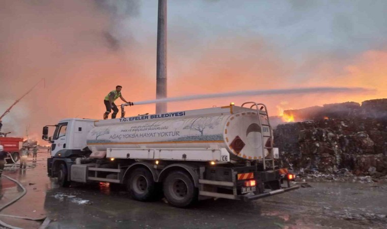 Efeler Belediyesi, Söke’de Kipaş Kağıt Fabrikası’nda devam eden yangın söndürme çalışmalarına destek verdi.
