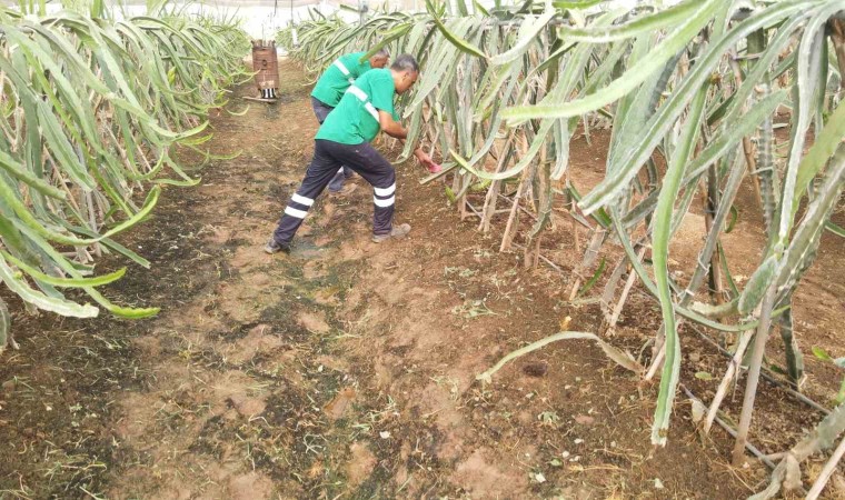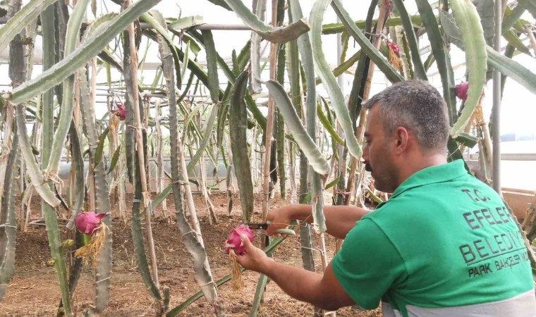Efeler Belediyesi’nin Şevketiye Mahallesi’ndeki tarım arazisi üzerinde kurulu serada yetiştirilen ejder meyvelerinin hasadı yapıldı.