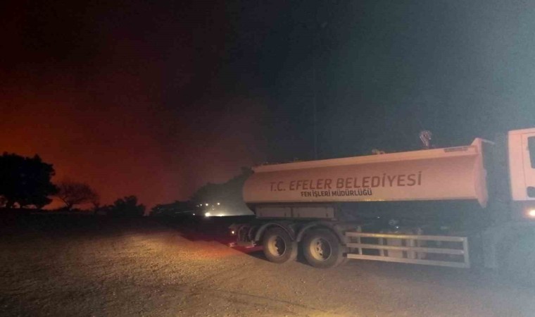Efeler Belediyesi Fen İşleri Müdürlüğü’ne bağlı ekipler, çeşitli yangın söndürme araçları ve geniş bir personel kadrosuyla zorlu mücadelede yer alıyor.