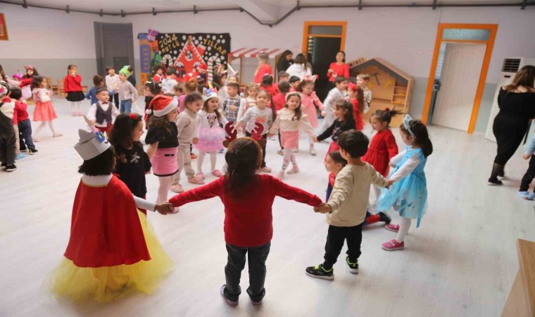 Başkan Atay’ın Ata, Mimar Sinan, Adnan Menderes ve Cumhuriyet Mahallelerinde hizmete açtığı gündüz bakımevlerindeki 3, 4 ve 5 yaşlarındaki minikler, özenle hazırlandıkları eğlenceli bir programla yeni yıl neşesini doyasıya yaşadı. Gündüz bakımevlerinin renkli sınıfları; çocukların elleriyle yaptıkları yılbaşı süslemeleri ile adeta birer sanat galerisine dönüşürken, minikler de müzik ve dans performanslarıyla sınıflarını coşkuyla doldurdu.