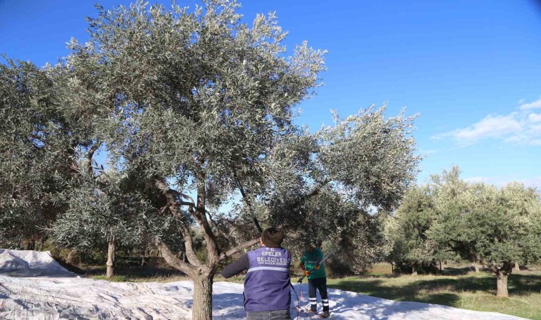 Efeler Belediyesi sorumluluk alanındaki park, bahçe ve yeşil alanlarda yetişen zeytinlerin hasadına başladı.