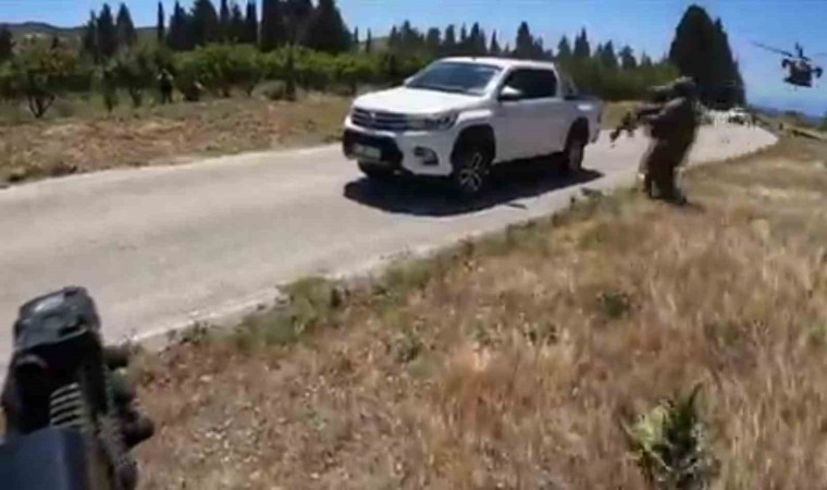 Milli Savunma Bakanlığı, İzmir’de devam eden Efes-2024 Tatbikatı kapsamındaki ’rehine kurtarma eğitimi’ne ilişkin görüntüleri paylaştı. Gerçeğini aratmayan tatbikatta iki helikopterde bulunan askerlerin, seyir halindeki iki kamyonete operasyon düzenleyerek, rehineleri kurtardığı anların video görüntülerine yer verildi.