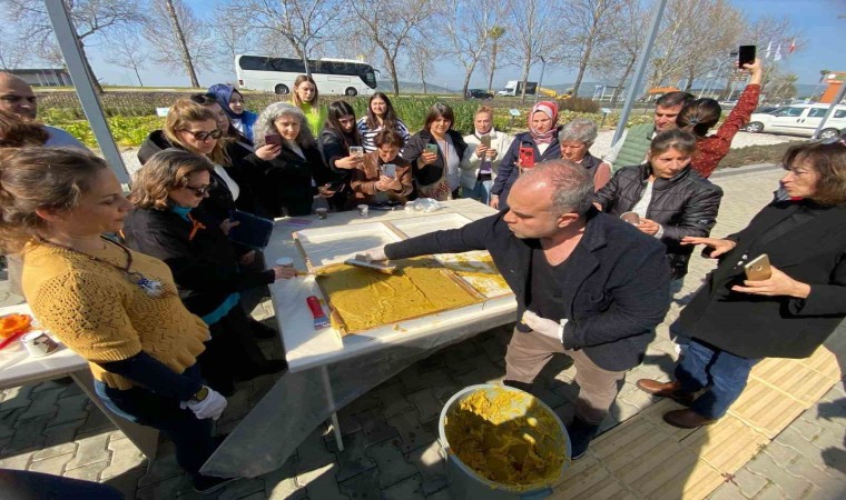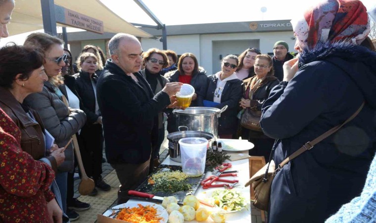 Efes Tarlası Yaşam Köyü Toprak Okulunda, eğitimler devam ediyor. Üreticilere yönelik yapılan eğitimlerin yanı sıra, farkındalık oluşturmak amacıyla zeytinyağı sabununun yapımı ile ilgili atölye çalışması düzenlendi. Ziraat Mühendisi Mete Eltepe, asit oranı yüksek olan ve yemeklik olarak kullanılamayan zeytinyağlarından sabun yapımı hakkında katılımcılara bilgiler aktardı. Atölyeye yoğun ilgi gösteren kadınlar, doğru teknikleri öğrendiklerini, asit oranı yüksek dip yağları değerlendirmekten memnun olduklarını söyledi.