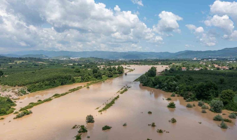 Düzce’de yağışın ardından adeta sular altında kalan kentin önemli turizm merkezlerinden Efteni Gölü, havadan görüntülendi.