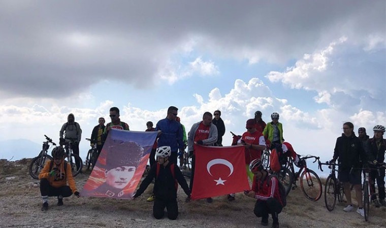 Denizli’de, Cumhuriyet’in kuruluşunun 100. yılı anısına ‘Bayrağını ve Bisikletini al gel’ etkinliği düzenlendi. 25 bisikletli, Ege Bölgesi’nin en yüksek noktası Honaz Dağı’na bisikletle çıkarak, zirvede Türk bayrağı ve Atatürk posteri açtı.