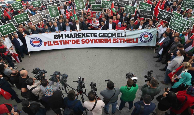 Eğitimciler Birliği Sendikası (Eğitim-Bir-Sen) üyeleri, İsrail’in Filistin’e saldırılarına tepki göstermek amacıyla Birleşmiş Milletler (BM) Ankara Ofisi önünde gösteri düzenledi.