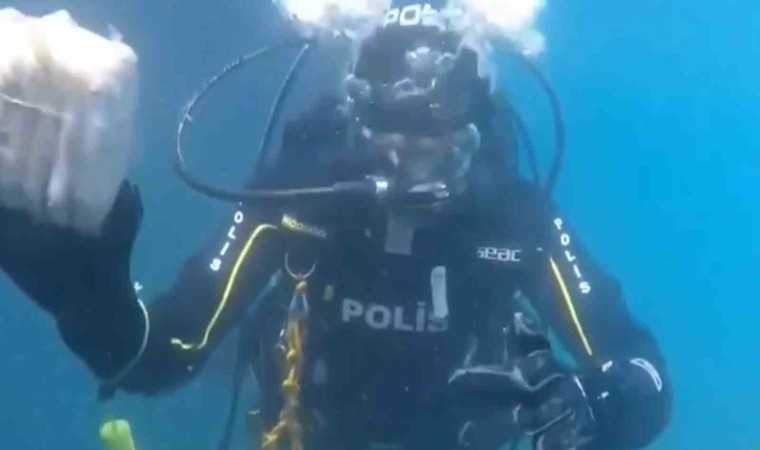 Hatay Emniyet Müdürlüğü ekipleri, İskenderun ilçesinde yapılan eğitim dalışı sırasında suyun altında 1 kilo 440 gram takoz esrar ele geçirdi.