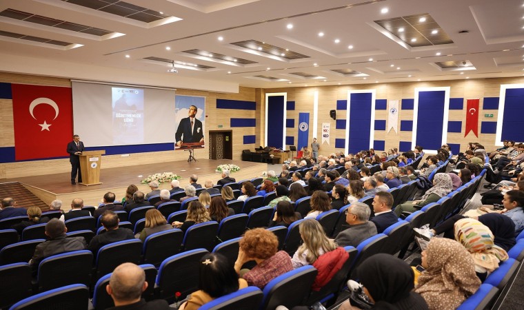 Rektör Prof. Dr. Ahmet Kutluhan yaptığı konuşmada şunları kaydetti: “Öğretmenlerimiz bize neyi öğretti? Diye sorduğumuzda cevabı bugün çok net verebiliyoruz. Çünkü Türkiye Cumhuriyetimizin 100. yılını yaşıyoruz. Eğer öğretmenler öğrencilerine Cumhuriyetimizi, Vatanımızı, Devletimizi, milli ve dini değerlerimizi öğretmeseydi işte hepimizin gördüğü dünyadaki manzaralardan bir manzara da bizler görmeyecektik. Onun için bu uğurda çalışmış, şu anda rahmetli olmuş, şehit olmuş ve şu an da yine çalışan tüm öğretmenlerimize gerçekten minnet borçluyuz. Bugün Aybüke öğretmen şehit olmuştur. Nice öğretmenlerimiz, ben doğu görevi de yaptığım için çok iyi biliyorum. Doktor hedefte olmazdı çünkü ihtiyaç vardı. Ama öğretmen milletin birliği ve vatanın bölünmezliğini öğrettiği için hedefteydi. Bunun için bizler öğretmenlerimizi anmakla, yâd etmekle kalmamamız lazım. Gerçekten onlar her zaman elleri öpülesi kişilerdir ve onların sözleri her zaman doğrudur. Yetişmemizde çok büyük rolleri vardır. Öğretmen olacak arkadaşlara söylüyorum. Her öğretmenin öğrencisine verdiği bir bilgi vardır ama ayrıca bir ruh vardır. Çünkü o öğretmen de aynı kapsam içinde yetişiyor. Yeni ufuklarla ülkemiz gerçekten iç dünyasını bitirmiş, Türkiye Cumhuriyeti dünyaya açılmış, dünyada barışın bir noktası olmuştur. Geçmişimizde Osmanlı Devleti var, dünyayı yaklaşık 500 yıl yönetmiş hiç kimsenin burnu kanamamış. Dört yüz elli yıl Filistin toprakları bizim yönetimimizdeydi kimsenin burnu kanamadı. Ama şimdi günümüzde ne adalet var ne insanlık var, ne vicdan var. Çünkü bunların öğretmenleri sakat. Öğretemiyorlar demek ki. Onların öğretilerinde adalet yok, insanlık yok, vicdan yok, başka şeyler var. Kötülükler var. Öldürmekten zevk alan öğretmenler var demek ki Bizde çok şükür adaleti öğreten, barışı öğreten öğretmenlerimiz var. Onun için Türkiye Cumhuriyeti’nin geleceği nice yüz yıllarda saklıdır ve olacaktır. Üniversitemiz hayatın rehberi dedik. Her alanda üniversitenin rolü olsun dedik. Olmak da zorunda. Hayatın rehberi olan üniversitemiz aslında öğretmenlerimizin rehberliği ile bu işi yapıyor. Öğrencinin rehberi öğretmen olduğu için biz üniversite olarak öğrendiklerimizi, bildiklerimizi şehirle, insanla ve insanlıkla paylaşmak istiyoruz. Üreten öğretmenlerimiz, üreten üniversiteyi oluşturmuşlardır. Bu üniversitenin oluşumda da yine öğretmenlerin büyük rolü vardır. Allah onlardan razı olsun. Tüm öğretmenlerimizi tebrik ediyor, kutluyorum. Geleceğe daha adaletle, daha barışla bakalım. Dünyaya barışı Türk milleti getirecektir. Bunun şuuru ile hareket edelim. Hiçbir şeyden yılmayalım. Öğretmenler Gününüz tekrar kutlu olsun” dedi.