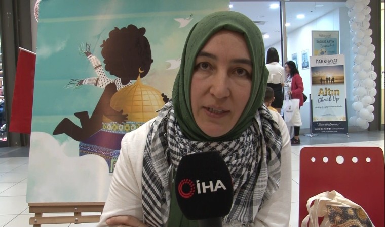 Kütahyalı eğitimci yazar Meltem Koyuncu, kitabının gelirini Filistinlilere bağışlamak üzere stant açtı.