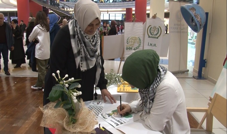 Çocuk Gelişimi Öğretmeni Koyuncu, Sera AVM’de ’Bilmece bildirmece’ isimli kitabını Gazzeliler için imzaladı.