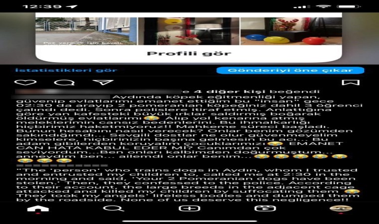 Aydın’ın Efeler ilçesinde Gürçay çifti, eğitim için teslim ettikleri 2 adet Pomeranian cinsi köpeklerinin cansız bedenlerini teslim aldı. İddiaya göre, büyük ırk köpeklerin kendi köpeklerini boğarak öldürdüğünü öğrenen çift işletme sahibinden şikayetçi olurken, gözyaşları içerisinde her gün fotoğraflarına baktıkları can dostları için açtıkları tazminat davasından gelecek olan paranın tamamını, sokak hayvanları için bağışlayacaklarını belirtti.
