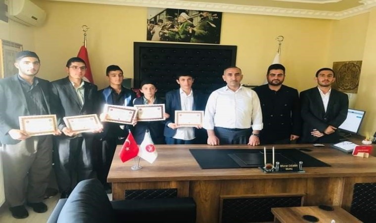 Güroymak İlçe Müftülüğünde, hafızlık eğitimini tamamlayan ve Diyanet İşleri Başkanlığınca gerçekleştirilen Hafızlık Tespit Sınavı’nda başarılı olan 14 öğrenciye hafızlık belgeleri takdim edildi. İlçe Müftülüğünde düzenlenen programda, Güroymak İlçe Müftüsü Murat Demir, öğrencilere hafızlık belgelerini takdim etti.