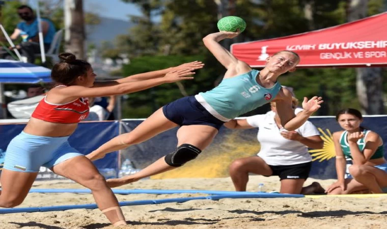 EHF Avrupa U17 Plaj Hentbolu Şampiyonası'nda mücadele eden Türkiye milli takımları, klasman maçlarına hazırlanıyor. İnciraltı Spor Tesisleri'nde düzenlenen şampiyonada kız takımımız, Portekiz'e 2-1 yenilerek grubunu 4 puanla tamamladı ve 9.'luk-12.'lik maçında Hırvatistan ile karşılaşacak. Erkek milli takımı ise 4 puanla grubunu beşinci tamamladı ve 13.'lük-15.'lik klasman maçlarına katılacak. Şampiyonanın sonunda kupalar sahiplerini bulacak ve bugün sonunda son dört takım belirlenecek. Maçlar EHF TV, Spor DSmart ve Dsmart GO'da canlı olarak yayınlanıyor.