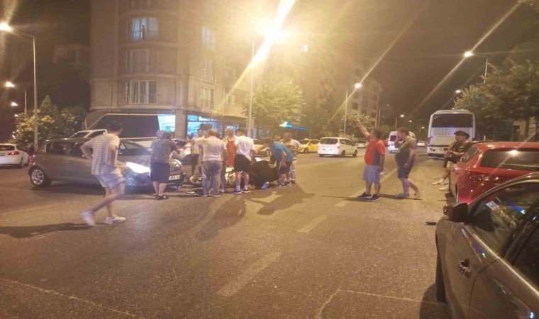 Tekirdağ’ın Çorlu ilçesinde ehliyetsiz sürücünün kullandığı otomobil, motosikletli kurye ile çarpıştı. Kuryenin yaralandığı kaza anı kameraya yansıdı.