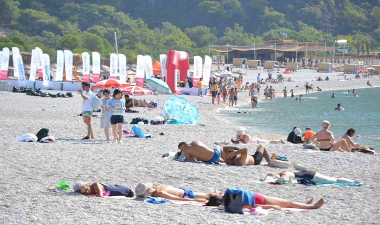 Türkiye’nin büyük bir bölümünde serin ve yağışlı hava etkili olmaya başlarken, Fethiye Ölüdeniz’de yaz bitmiyor. Farklı ülkelerden Ölüdeniz’e gelen turistler, güneşlenip tatilin tadını çıkarıyor. Özellikle yamaç paraşütü tutkunlarının akın ettiği Ölüdeniz Babadağ’dan uçan turistler, adrenalin depoluyor.