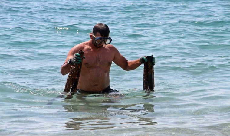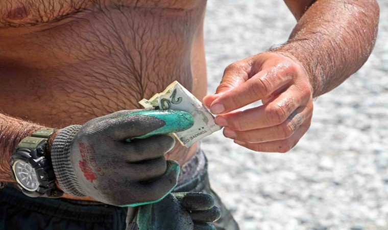 Antalya Muratpaşa’da yaşayan 4 çocuk babası Erhan Uludağ, turizm sektöründe şoför olarak çalışırken araya pandeminin girmesiyle işsiz kaldı. İş aramasına rağmen bulamayan Uludağ, bir gün denize girmek için geldiği Konyaaltı Sahili’nde yüzerken suyun dibinde metalleri fark etti. Demirleri geri dönüşüme satabileceği fikriyle her gün sahile gelip denizin dibine palet ve gözlüğüyle tüpsüz dalan Uludağ, günde ortalama 250-300 kilo metal çıkarmaya başladı. Kış aylarında otobüs ve kamyon şoförlüğü yapan Uludağ, yaz aylarındaki 2 aylık tatilini de denizden metal toplamakla geçirmeye başladı. Bu yıl 15 gündür denize dalan ve 3,5 tona yakın demir çıkartan azimli adam, kilosunu 7 liradan satıp aile bütçesine büyük katkı sağladı.