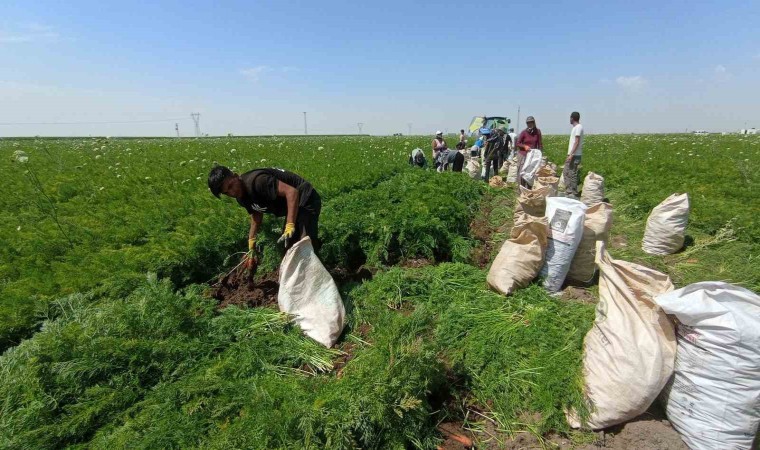 Konya’da mevsim normallerinin üzerinde seyreden hava sıcaklıklarında tarım işçileri ara vermeden çalışmaya devam ediyor. Tarım işçileri, özellikle sıcaklığın 40 dereceyi bulduğu havuç tarlalarında her gün sabahın ilk saatlerinde mesailerine başlıyor.