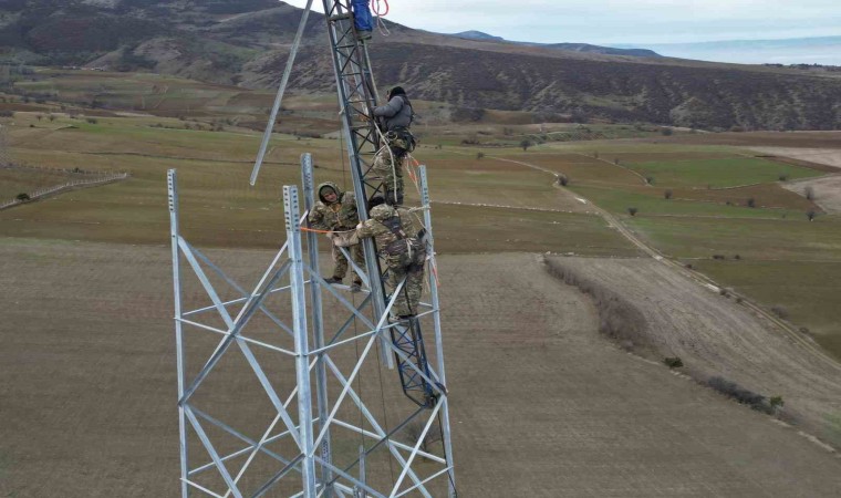 Tokat’ta yüksek gerilim hattında görev yapan işçiler, metrelerce yükseklikteki direkte çalışarak ekmek parası kazanıyor. Enerjiyi iletecek olan telleri taşıyan direkleri monte eden işçiler, 80 metre yükseklikteki rahat tavırlarıyla dikkat çekiyor. Sadece ülke geneline değil yurt dışına da giderek ter döken işçiler, zorlu mesai şartlarına aldırmadan çalışmalarına devam ediyor.