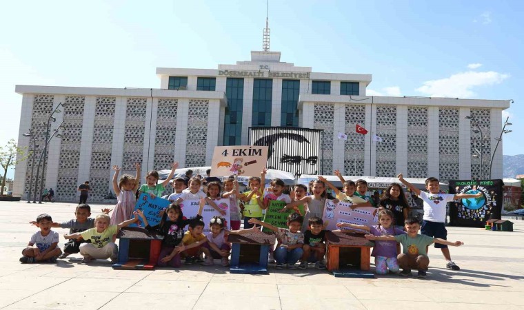 Döşemealtı Kent Meydanında düzenlenen Hayvanları Koruma Günü etkinliğinde minikler kendi elleriyle hazırladıkları mamaları ilçede yaşayan sokak hayvanlarına dağıtılmak üzere belediye veteriner hekimlerine teslim etti.