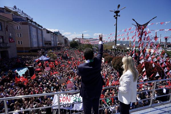 Bunun bir revizyon dönemi olduğunu, bir kişinin değil, milletin dediğinin olduğu, devletin halka gücünü değil, şefkatini gösterdiği bir dönemin geldiğini ifade eden İmamoğlu, “Konuşurken döver, söver gibi değil, güler yüzlü bir dönem geliyor. Bir yöneticinin vatandaşa haddini bildirdiği değil, vatandaş karşısında haddini bildiği bir sistemdir Cumhuriyet. Bizimle görüşemiyor bile. Ekrem İmamoğlu CHP'li, Millet İttifakı'nın belediye başkanı. Devletin, memleketin partisi olur mu ya? Bir belediye başkanı seçildikten sonra, rozetini çıkarır milletine hizmet eder. Size söz veriyoruz; kurumsal ayrışmayı da partizanlığı da söküp atacağız. Çok çalışacağız, adil olacağız. Bayramı yaşamayı bile halkımıza hayal ettirdiler. Bunlar vermeyebilir ama sonraki bayram ikramiyesini, 13’üncü cumhurbaşkanımızın vaadi gibi 15 bin TL olarak vereceğiz” dedi. (DHA)