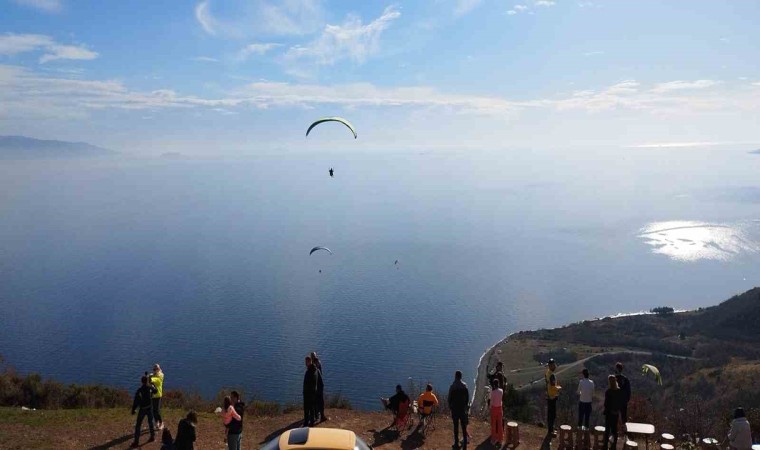 Ekstrem spor tutkunları, 250 ve 600 metrelik pistlerden rüzgarın durumuna göre uçuş yaparak, mavi ile yeşilin buluştuğu eşsiz manzaraları gökyüzünden izliyor.