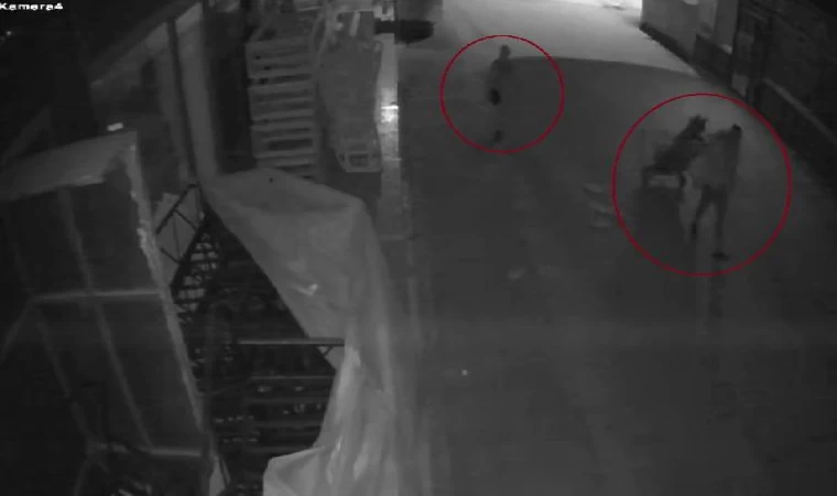 Yavuz YILMAZ/ İNEGÖL (Bursa), (DHA)- BURSA'nın İnegöl ilçesinde, el arabasıyla sanayi sitesinde dolaşan 1'i kadın 2 şüpheli, bir iş yerinin önünde nakliye için hazırlanan metal bahçe koltuğunu çaldı. O anlar güvenlik kamerasına yansıdı.